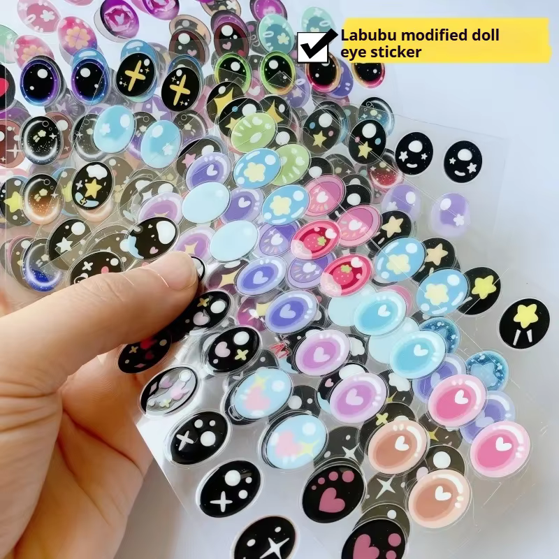 Estos pares de ojos, 16 en total, son imprescindibles para cualquier colección de pegatinas Labubu y para los usuarios que deseen añadir algunos toques personales intrincados a sus muñecas de vinilo.