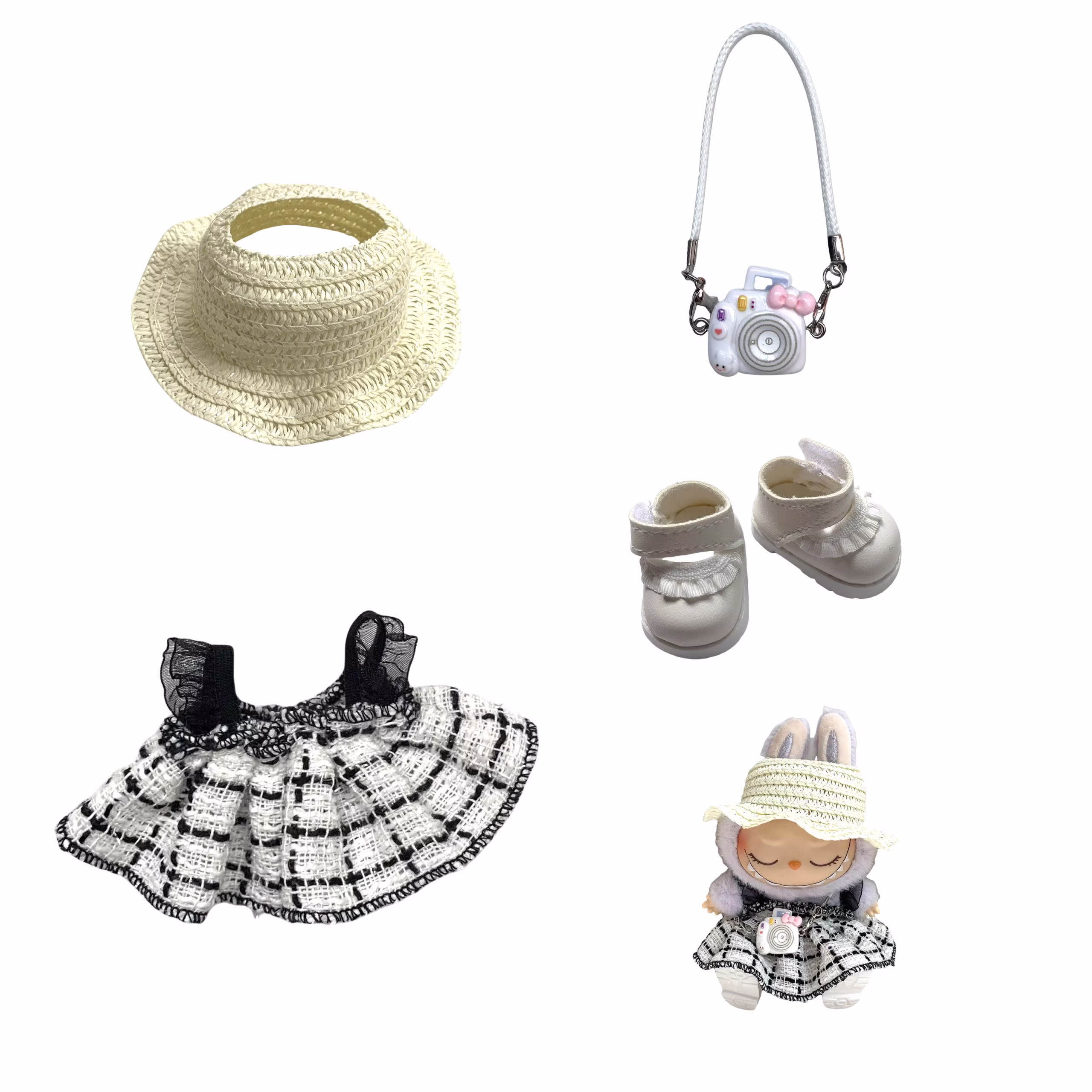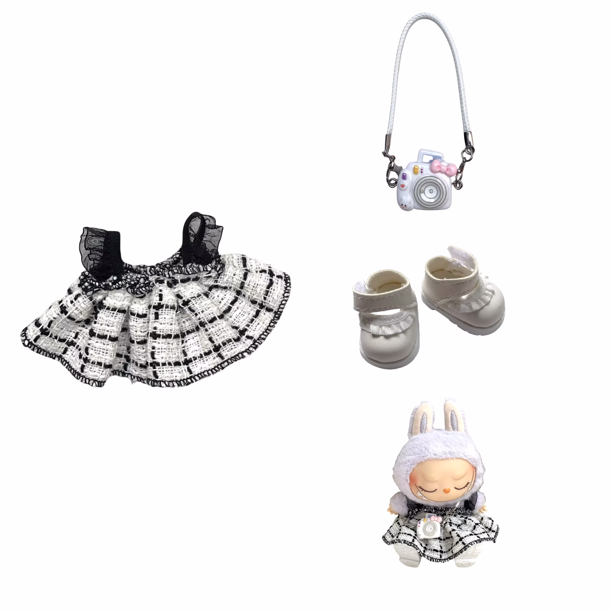 Conjunto de vestido para Labubu V1/V2 17 cm: ropa exterior de diseñador con accesorios DIY, ropa de muñeca para muñecas mini y un regalo inteligente para tener.