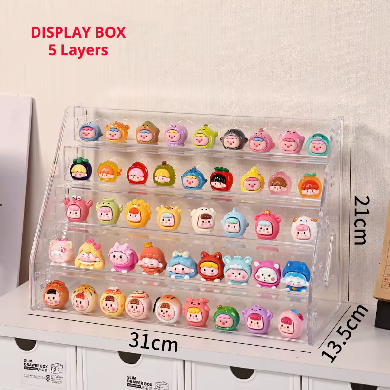 Caja clara de ABS para blind box, display y protector para Mini Molly DIY Dolls, organizador de almacenamiento para ensamble de muñecas en gabinetes de coleccionistas.
