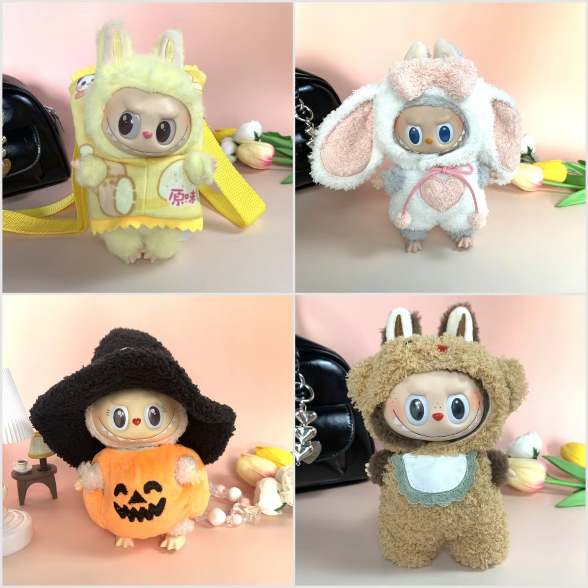Ropa para Labubu, juguete de peluche de 15-17 cm, llavero portátil, conjunto de atuendo de jardinero