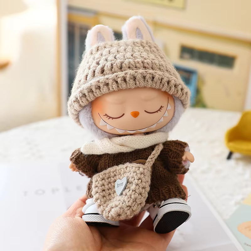 Ropa de 17 cm para muñecos de juguete Labalbu, mochila de lujo, nueva ropa original para el traje de suéter Labbubu. Bolso pequeño elegante, sombrero.