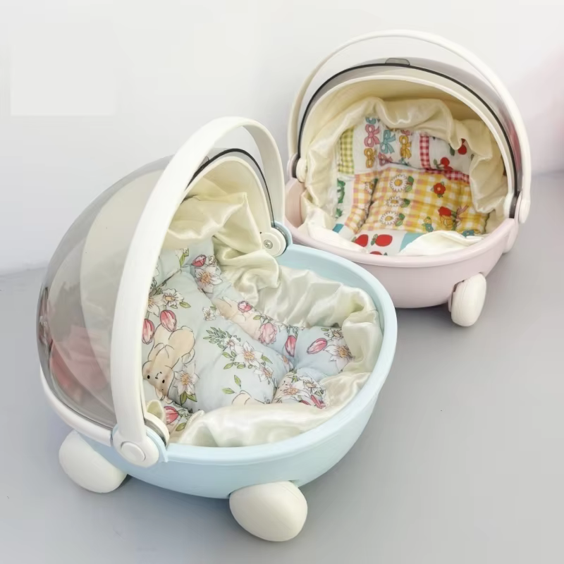 Este accesorio combina diseño kawaii y funcionalidad. Su construcción de algodón suave y transpirable protege a tus muñecas de 15-17 cm del polvo y proporciona un ambiente cómodo. En su interior, delicados cojines y una almohadilla en miniatura ofrecen el lugar ideal para «descansar» a tu Labubu o como una encantadora pieza decorativa.