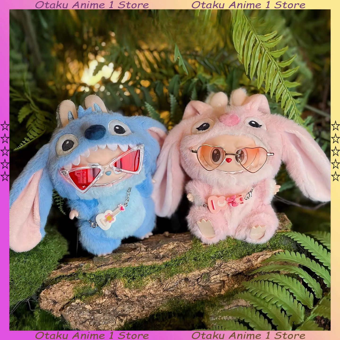 Muñeca de vinilo Labubu V1 V2 V2 V2 con conjunto de muñeca de peluche, conjunto de una pieza con ojos grandes, pequeño mono ángel amarillo, regalo lindo, solo ropa.