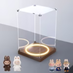Si ya admira el diseño de los impresionantes personajes Zimomo, Labubu y Angel, entonces la caja de almacenamiento de acrílico iluminada de Zimomo para juguetes burbujas será la joya que falta en su colección atesorada.