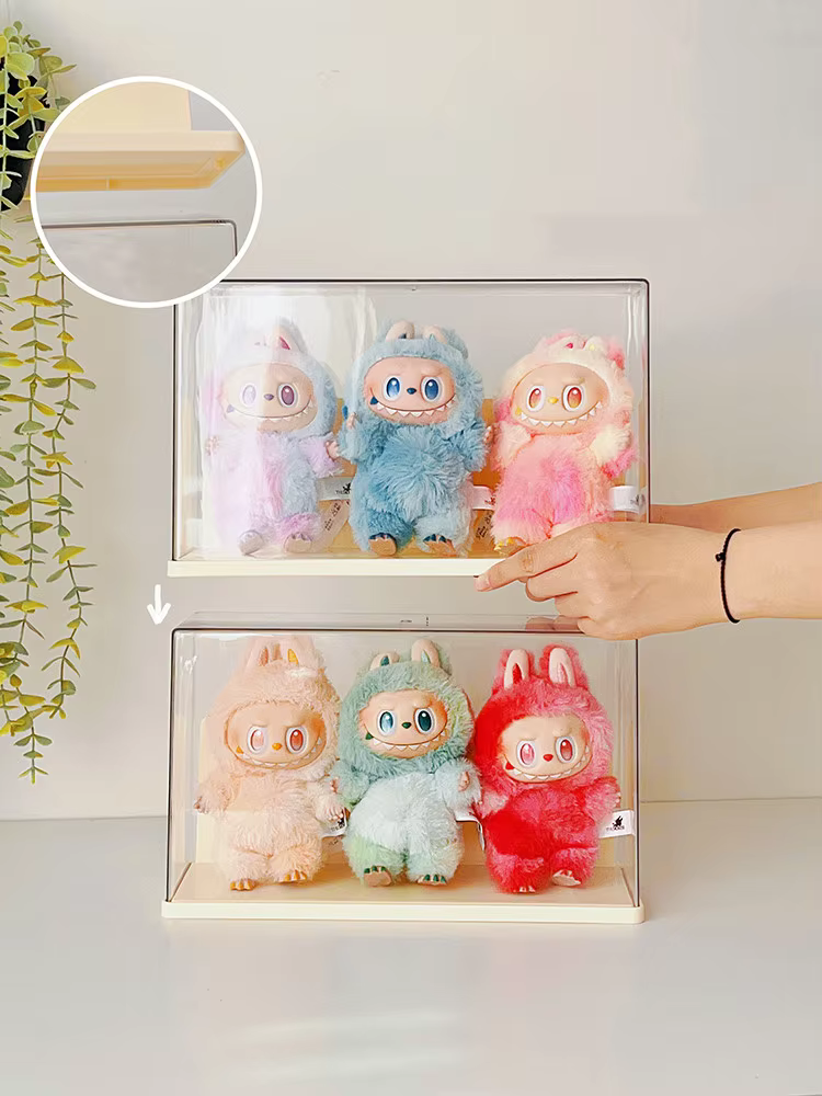 Con esta caja de almacenamiento para juguetes de peluche Labubu de POPMART, puedes exhibir y almacenar tus juguetes de peluche de forma segura en esta elegante caja de acrílico transparente. Está específicamente diseñada para guardar figuras de la colección Labubu de POPMART. No solo mantiene tus muñecas limpias y libres de suciedad, sino que también permite una exhibición elegante. Su diseño totalmente transparente muestra cada detalle de la figura del juguete sin necesidad de abrir la caja.