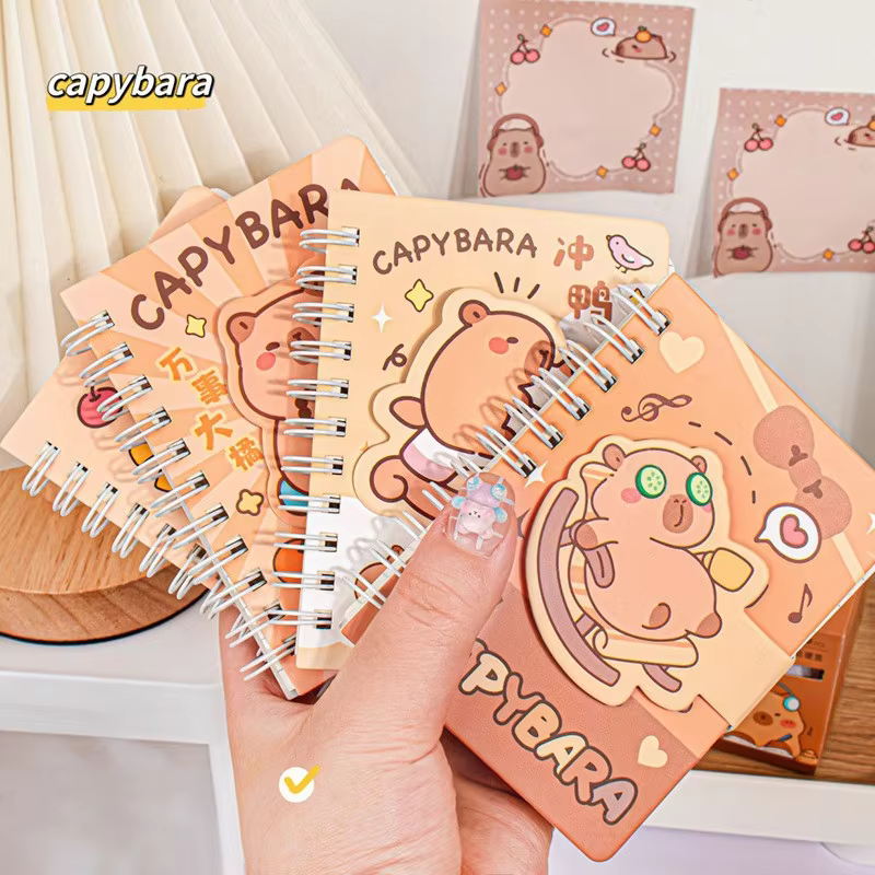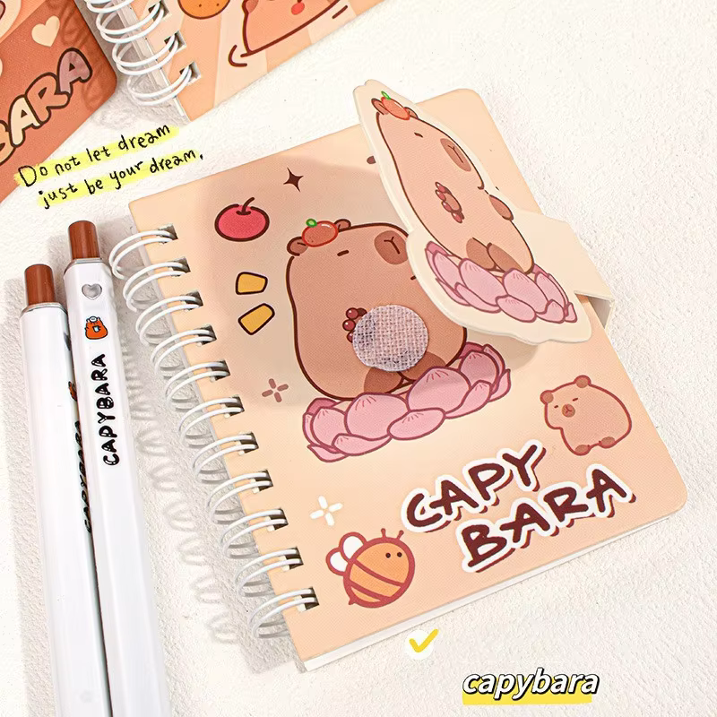 July 15, 2025El cuaderno portátil mini A7 Labbubu con un adorable diseño Kawaii de un capibara. Perfecto para estudiantes