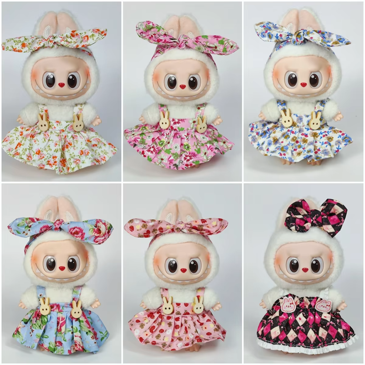 Ropa para la muñeca Labubu de 17 cm, accesorios, ropa para muñecas de peluche, pantalones, faldas, elegante con tirantes para muñeca, juguetes para disfrazar DIY, regalos