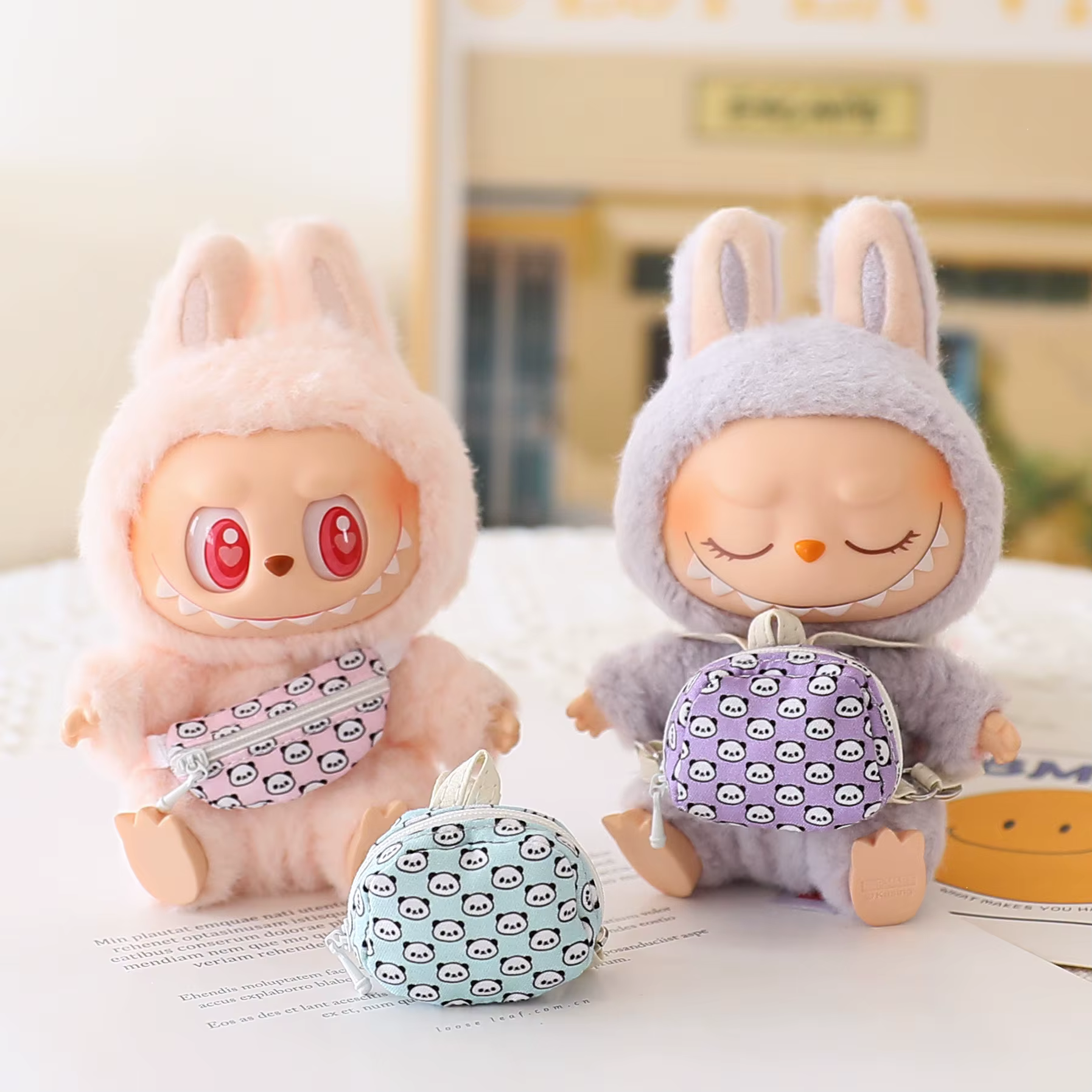 ¡Aumenta la elegancia de tu muñeca Labubu con este encantador conjunto de complementos! Este conjunto, creado específicamente para muñecas de 17 cm, comprende una encantadora mochila de moda y un mono de panda que dará a tu Labubu un aspecto más dulce y con gran personalidad.