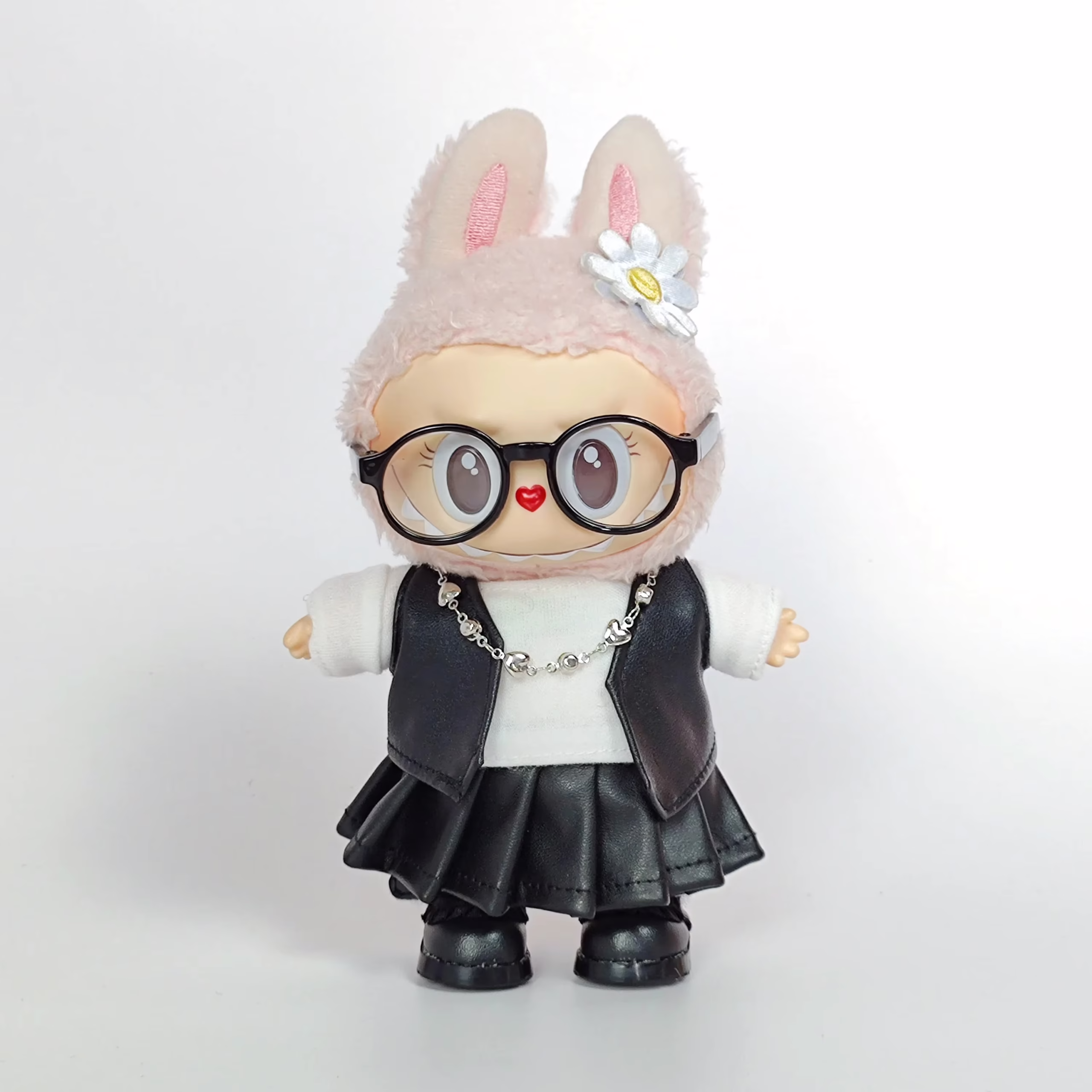 July 10, 2025Equipamiento de 15-17 cm para traje de llavero de caja ciega Labubu – Set de cuatro chalecos de cuero sintético para muñeca Labubu en negro.