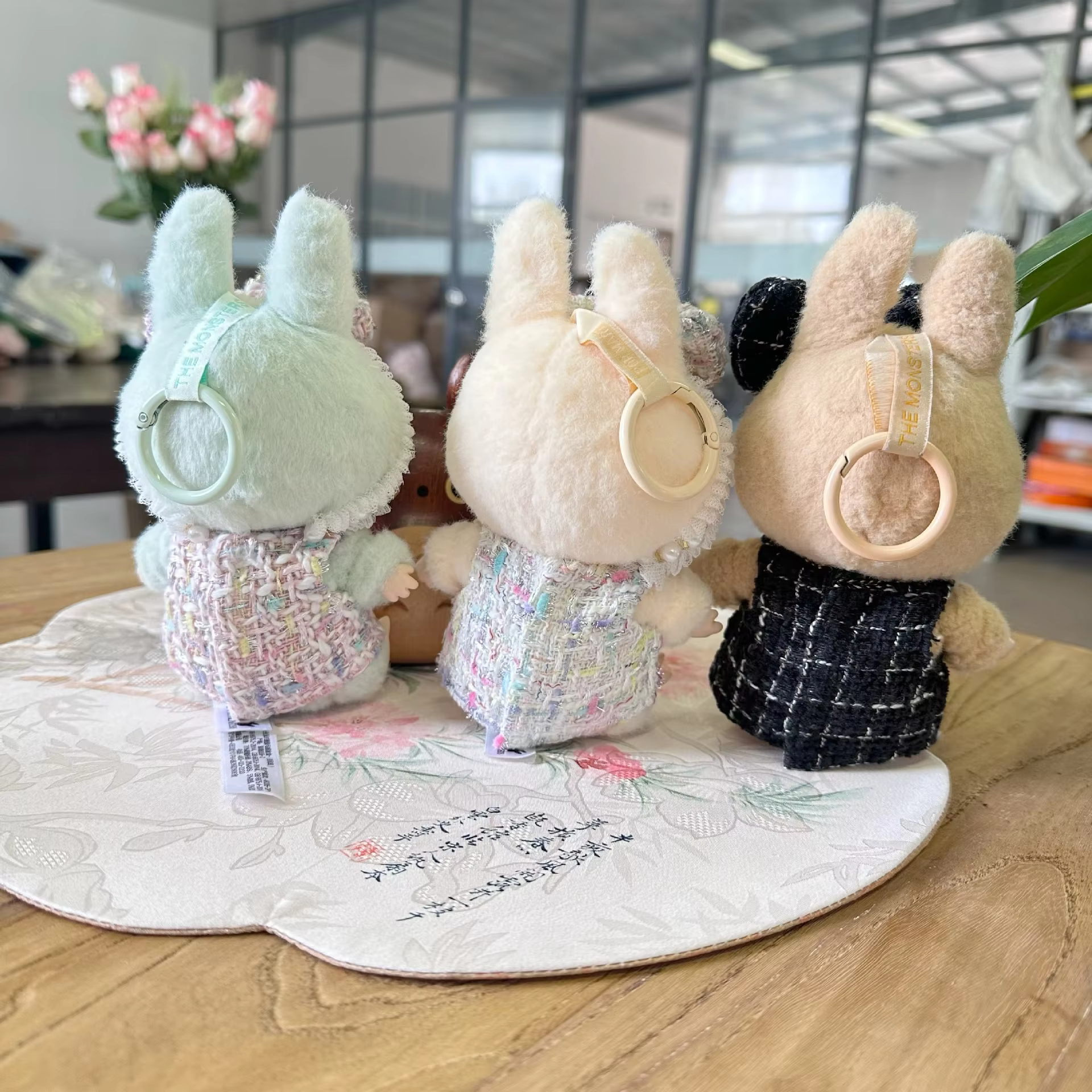 July 11, 2025Indumentaria (es decir, la ropa) para la muñeca de 1ra y 2da generación está empaquetada, el colgante LABUBU para una elegante falda de tela tejida en blanco y negro y cuello contemporáneo.