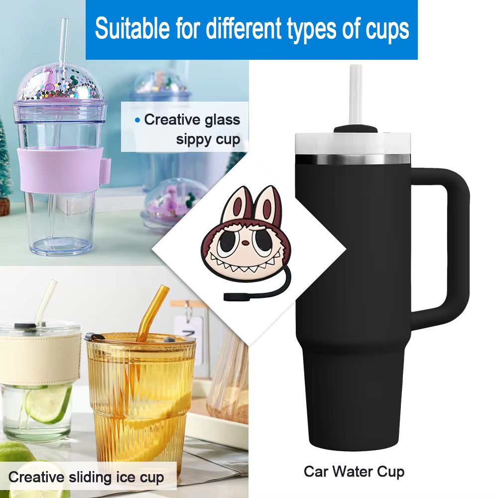 1-18 Uds nueva muñeca hermosa tapa de paja 10MM tapa de paja para bebida reutilizable. complementos de taza colgante de paja dijes tapa de paja colgante de regalo