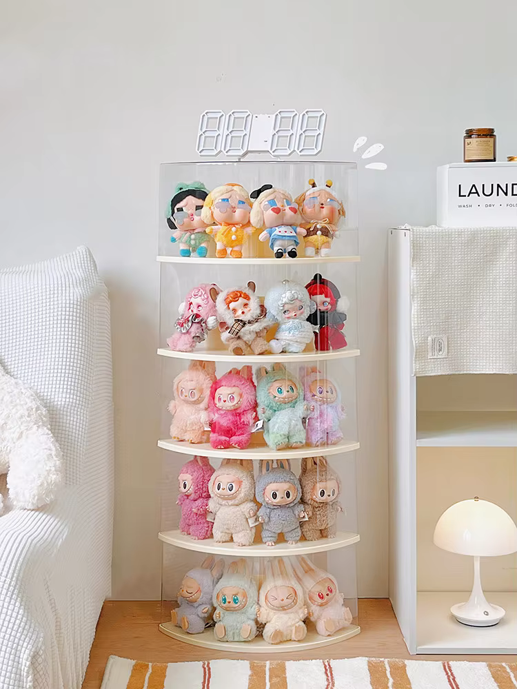 July 11, 2025La caja y la funda para Labubu es un organizador de almacenamiento montado que consiste en una estantería de exhibición duradera y resistente al polvo