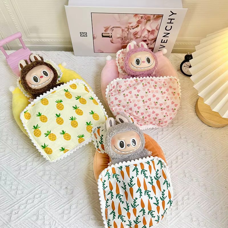 Muñeca Kawaii Labubu, mini saco de dormir, cama con almohada, maravilloso decorado para casa de muñecas, ornamento, muñeca de dibujos animados, accesorios para juguetes, muñeca animada, soportes para juguetes
