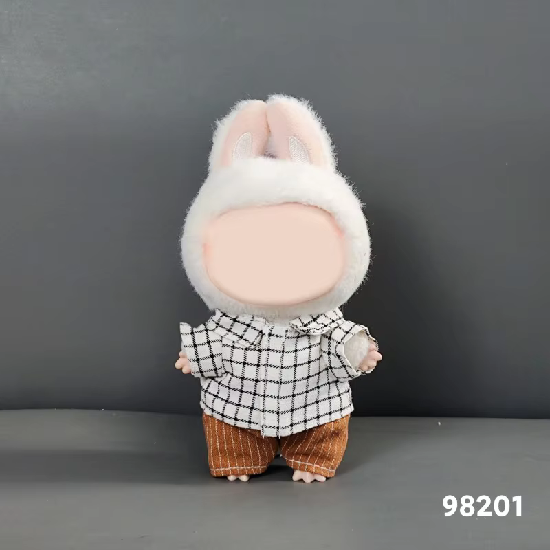 July 14, 2025Labubu-Mini muñeca 15-17cm, conjunto de sombrero y delantal de tela de peluche, accesorios, ídolo coreano sentado, atuendo de celebración de muñeca, traje de fiesta hecho a mano, vestido de muñeca.