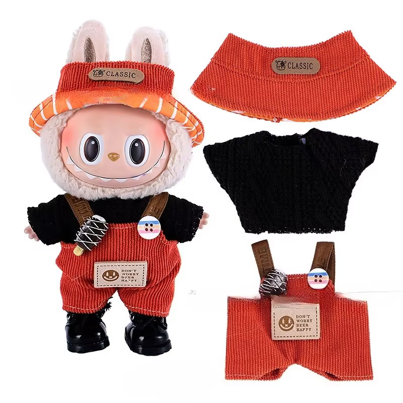 El atuendo ideal para las muñecas Labubu de 17 cm y de diferentes series, así como para otras muñecas, incluye complementos y mini vestimenta de muñeca de peluche