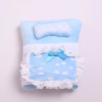 Set de cama para muñecas LABUBU Gen I/II para muñecas de 15/17 cm: cama mini rosa-azul, saco de dormir y almohada, parte de la serie Sitting Party.