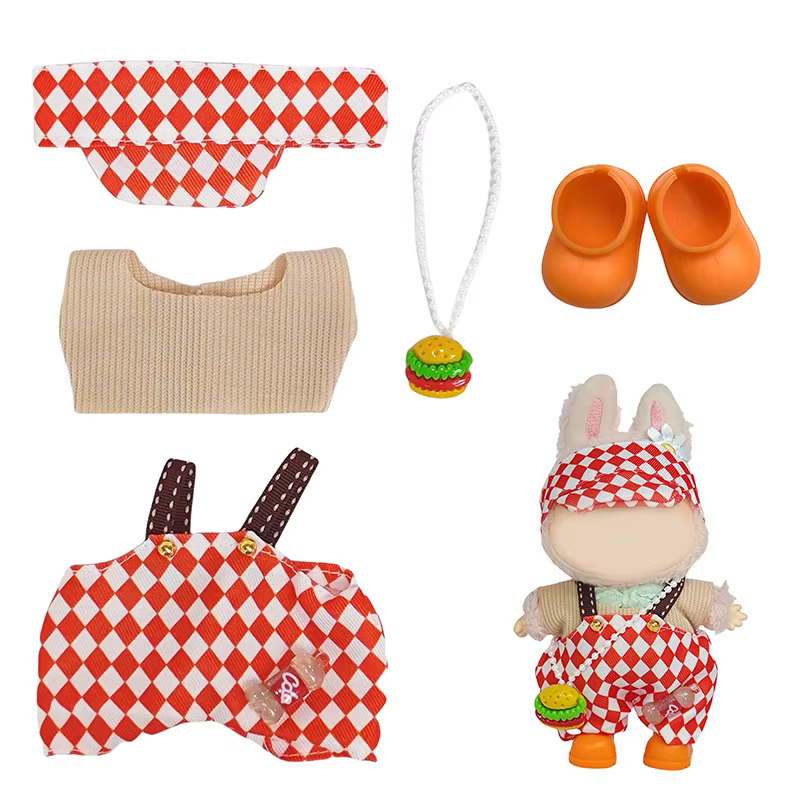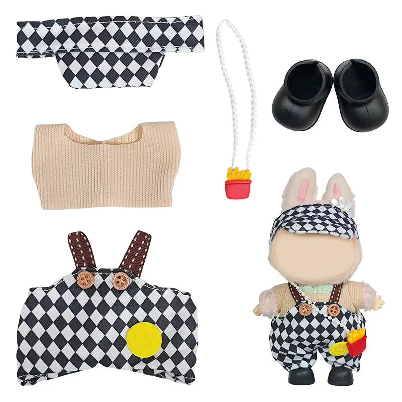Conjunto de accesorios sofisticados exclusivamente, para vestir Labubu 17 cm, para Labubu 3.0 2.0, conjunto con sombrero y overol con accesorios para Labubu 17 cm
