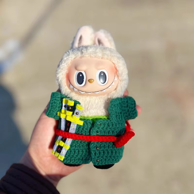 July 18, 2025Para Labubu Buwa, la posición es figura de vinilo de pie Zoro Sanji, altura de 17 cm, accessorized con prendas de borde de ganchillo sobre muñecas Labubu