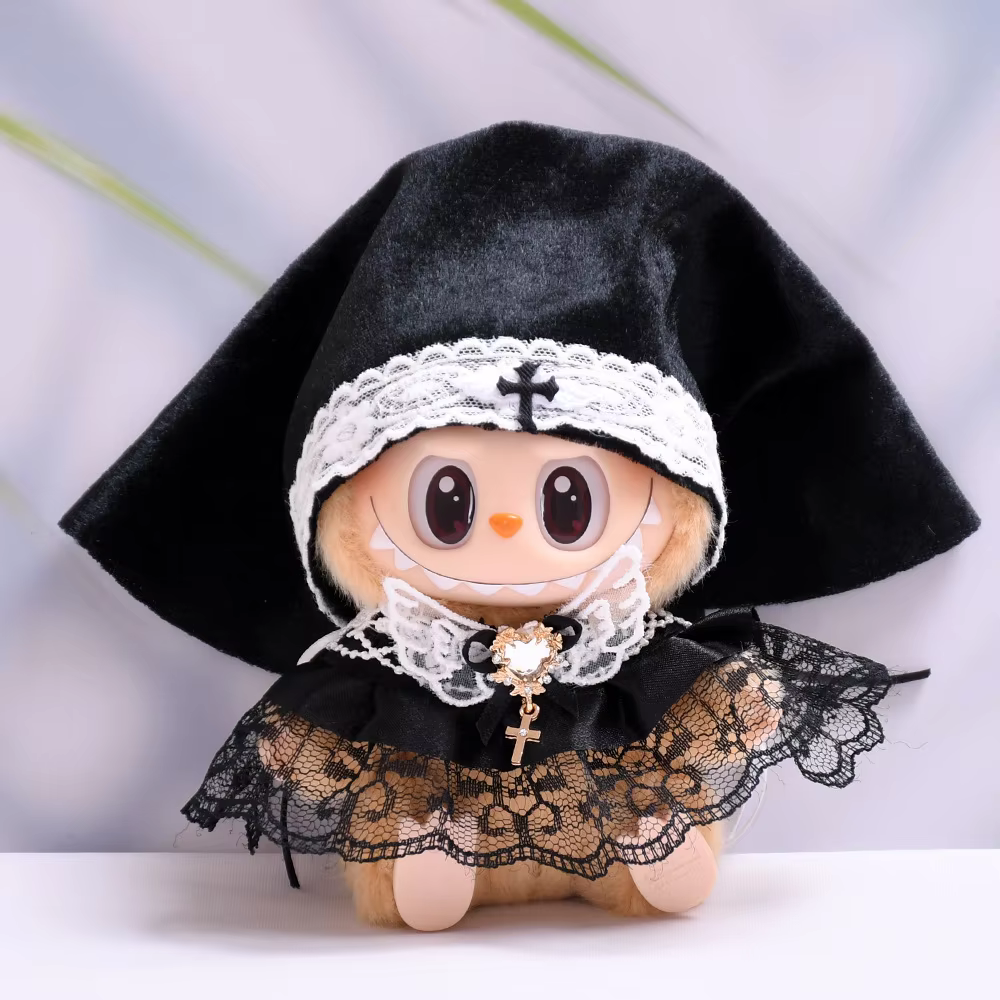 Cautiva a los fans del encantador mundo de Labubu con este disfraz de monje personalizado diseñado para los muñecos de peluche V1, V2 y V3, que miden entre 15 y 17 cm de altura. Este exquisito y único traje es la combinación perfecta de una pieza para la cabeza y un chal tradicional. Están meticulosamente elaborados para añadir un toque de delicadeza, espíritu y sofisticación a tus figuras de ídolo.