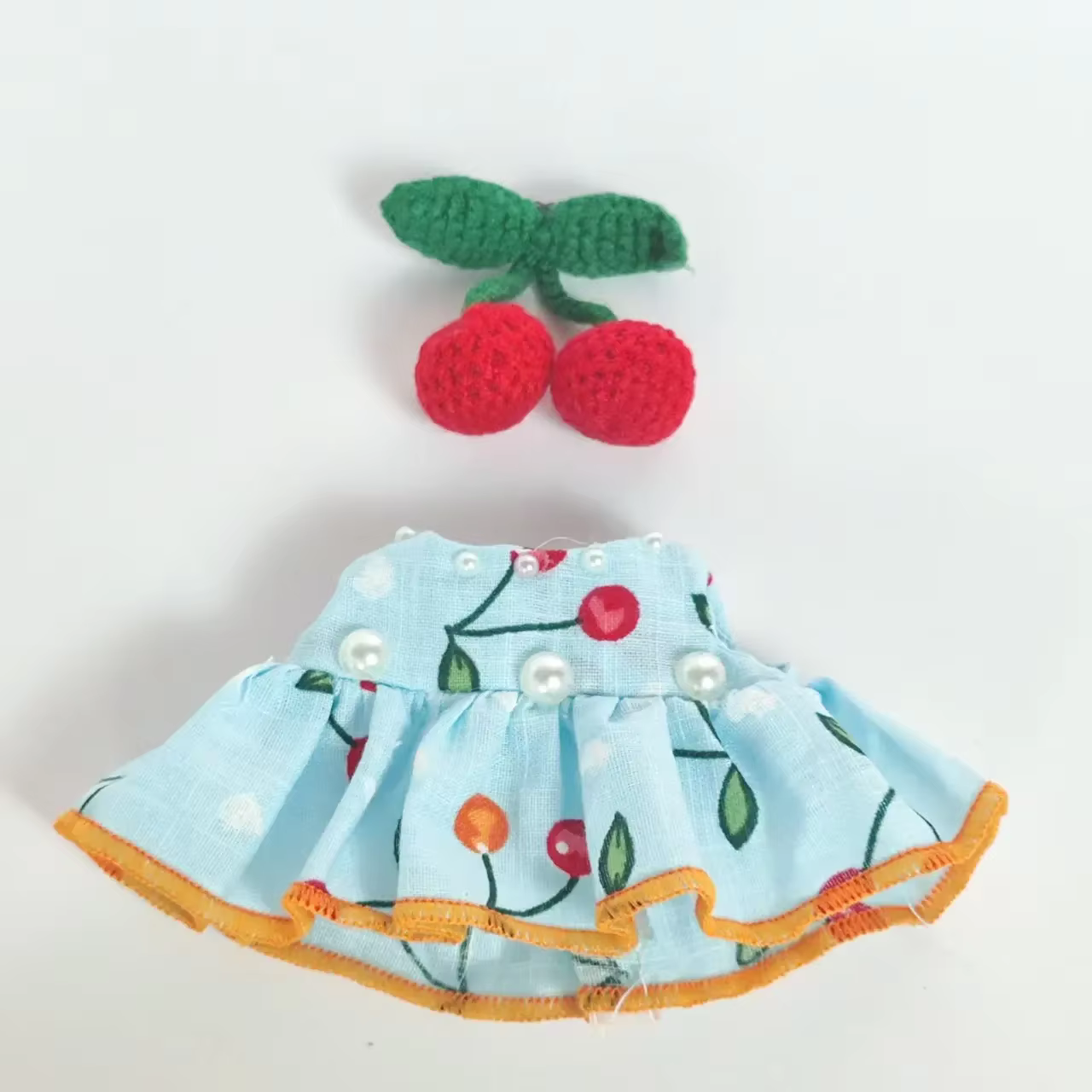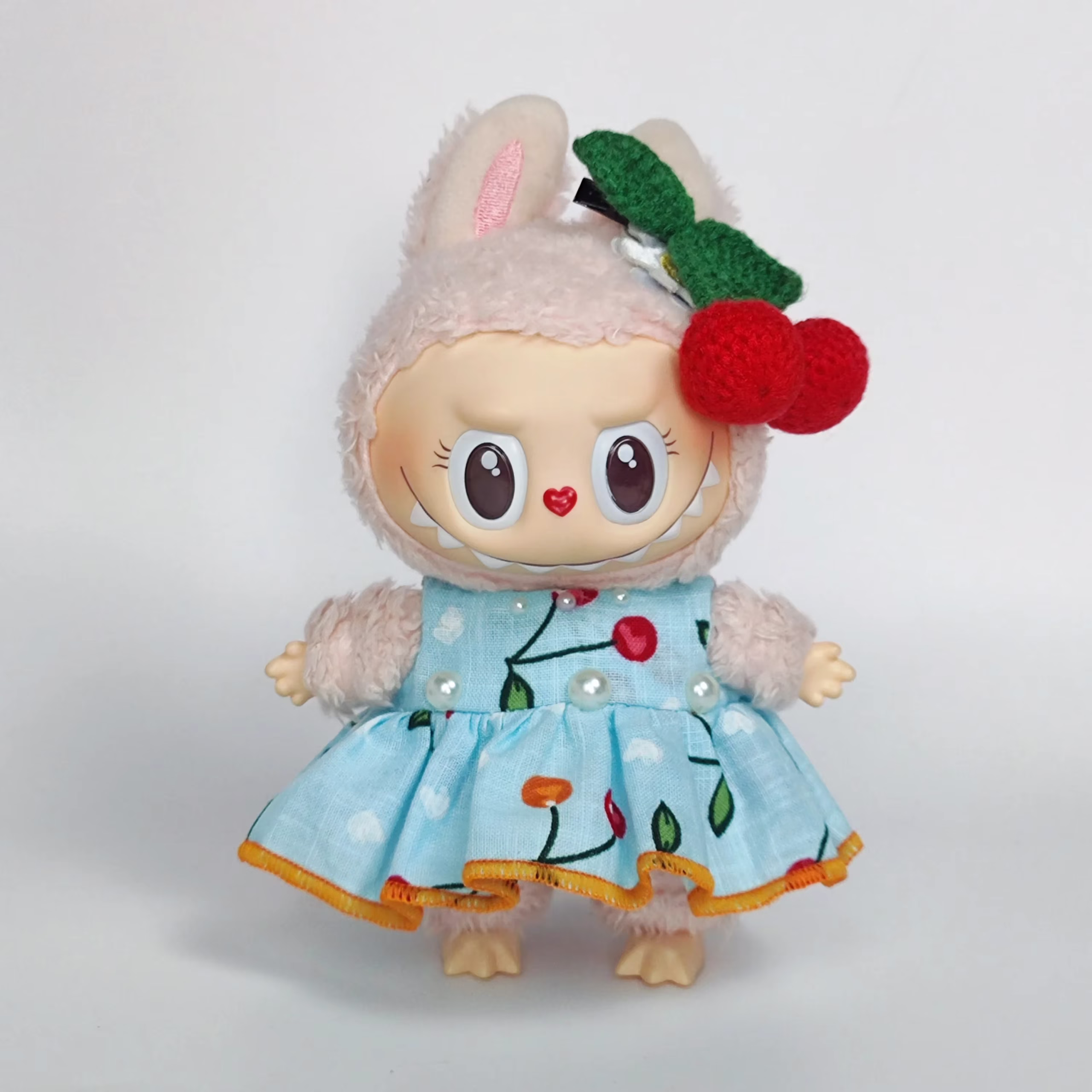 July 10, 2025Ropa para muñecas de Labubu, con un llavero, un vestido sin mangas hecho de tela de cereza fresca de verano.
