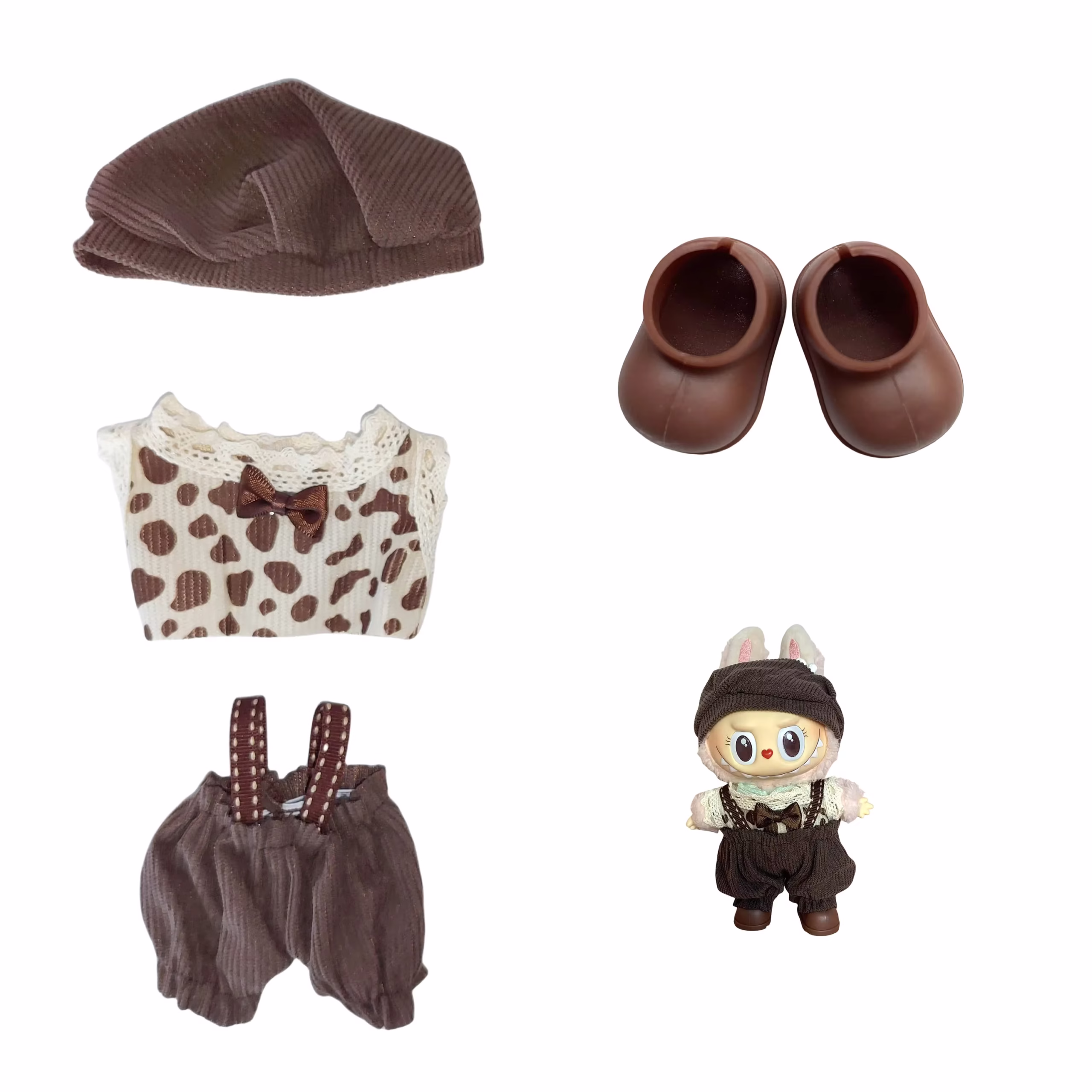 (Solo vestimenta) Vestimenta Labubu, pantalones animados, complementos Labubu, mono de otoño, sombrero-set, muñeca de peluche, vestido de fiesta, muñeca vestido de fiesta, muñeca accesorios